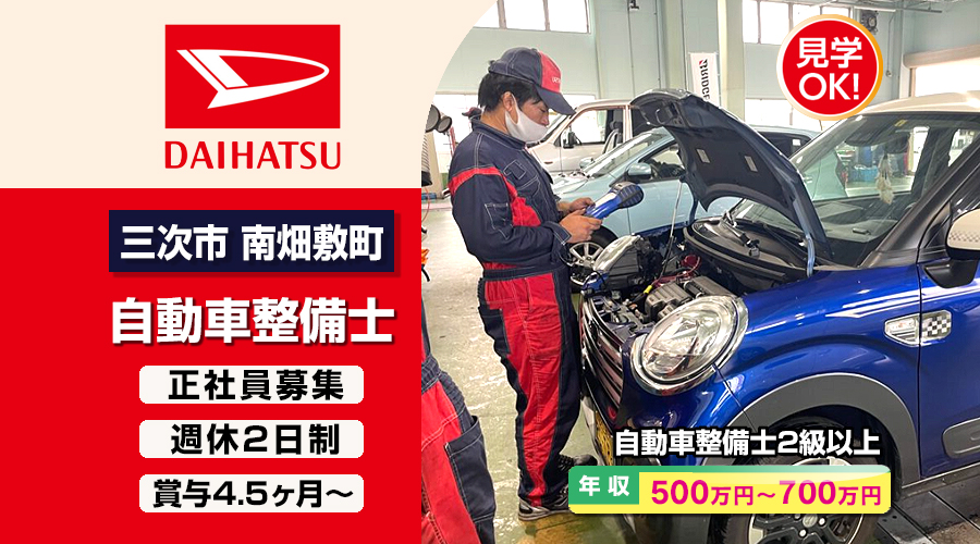 ダイハツ広島販売株式会社【ダイハツ広島販売】 自動車整備士・メカニック(広島県三次市南畑敷町)