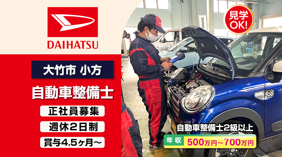 ダイハツ広島販売株式会社【ダイハツ広島販売】 自動車整備士・メカニック(広島県大竹市小方)