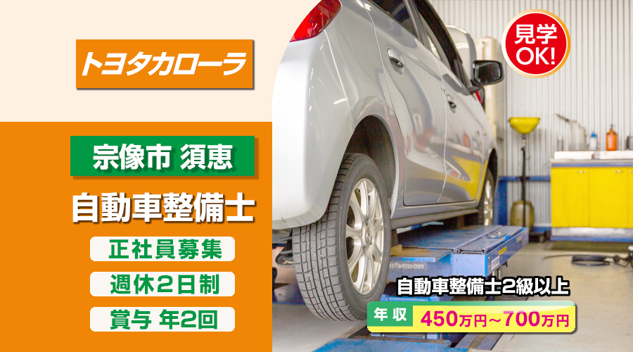 トヨタカローラ博多株式会社【トヨタカローラ博多】 自動車整備士・メカニック(福岡県宗像市須恵)
