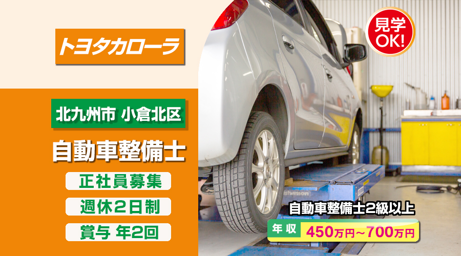 トヨタカローラ博多株式会社【トヨタカローラ博多】 自動車整備士・メカニック(北九州市小倉北区重住)