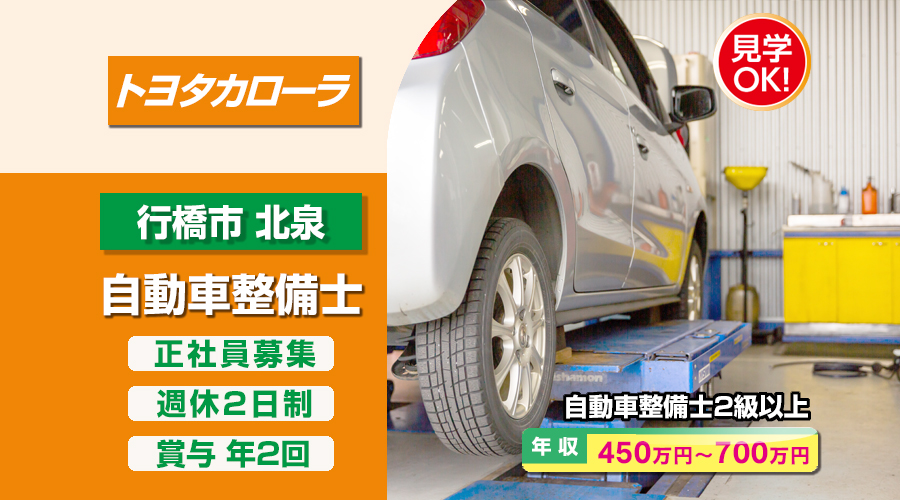 トヨタカローラ博多株式会社【トヨタカローラ博多】 自動車整備士・メカニック(福岡県行橋市北泉)
