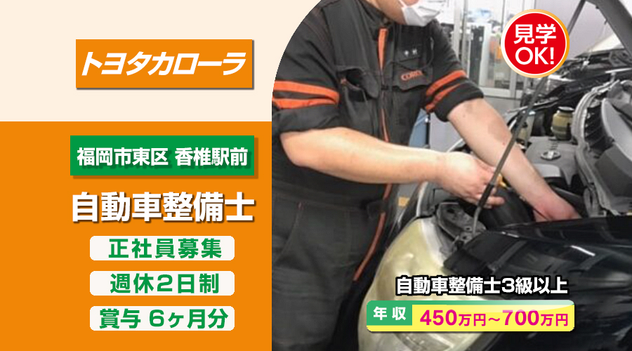 トヨタカローラ福岡株式会社【トヨタカローラ福岡】 自動車整備士・メカニック(福岡市東区香椎駅前)