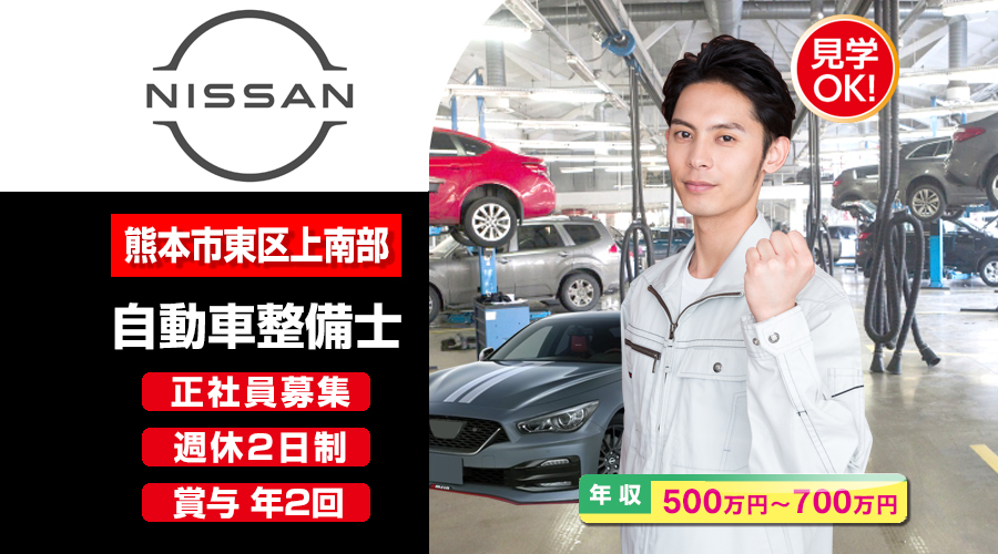 日産プリンス熊本販売株式会社【日産プリンス熊本】 自動車整備士(熊本市東区上南部)