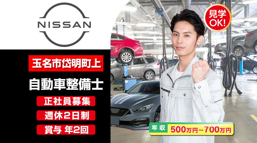 日産プリンス熊本販売株式会社【日産プリンス熊本】 自動車整備士(熊本県玉名市岱明町上)