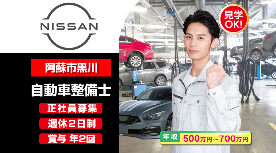 日産プリンス熊本販売株式会社【日産プリンス熊本】 自動車整備士(熊本県阿蘇市黒川)