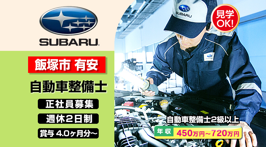 福岡スバル株式会社【福岡スバル】 自動車整備士・メカニック(福岡県飯塚市有安)